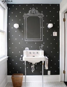 16 łazienek, w których ściany lub meble zostały pomalowane farbą tablicową. Doskonały przykład dla tych, którzy nie mają ochoty na...