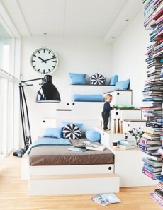 Łóżko na kółkach, kanapa na wysokości, kolorowa farba tablicowa czy gigantyczna lampa- a wszystko w jednym mieszkaniu w Kopenhadze. Zdjęcia: boligmagasinet.dk