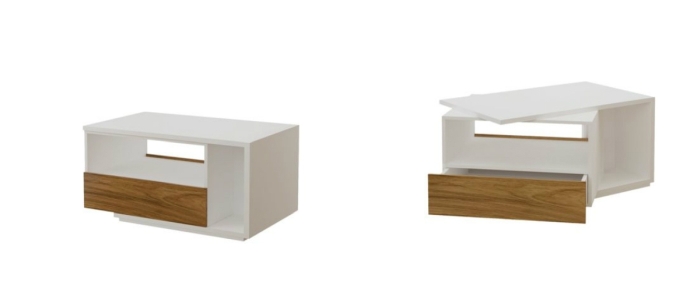 To mebel łudząco podobny do opcji nr3. Ponownie mamy półkę na dole, szufladę i schowek w wysuwanym blacie. Stolik o 10 cm dłuższy, ale prawie o 300zł droższy.
