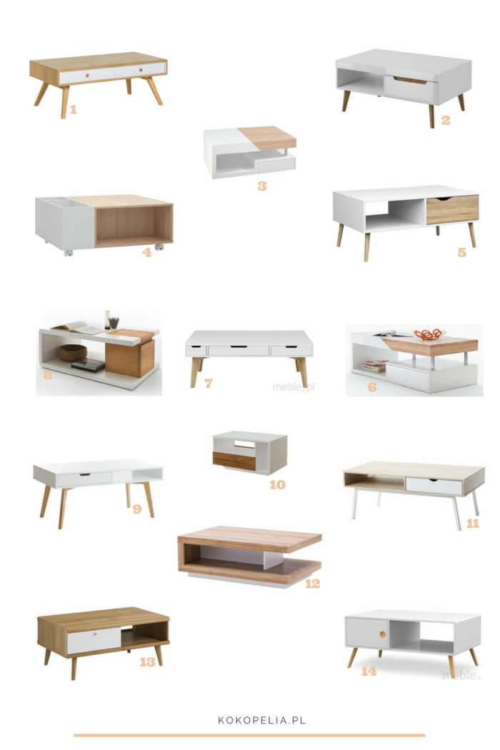 Poniżej znajdziecie zatem mały przegląd rynku meblarskiego. Wszystkie stoliki dostępne są w Polsce, większość z tych sklepów ma opcję wysyłki towarów kurierem. Zebrałam wszystkie meble w jeden kolaż, bo tak chyba najwygodniej będzie porównać formę i styl każdej z opcji. Prócz bardzo prostych kubików, znajdziemy tez stoliki na uroczych, szeroko rozstawionych drewnianych nóżkach w stylu retro. Mój przegląd zawiera meble w przedziale cenowym 275-1130zł. Wszystkich moich faworytów znajdziecie poniżej!